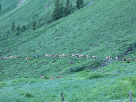 Der Abend nach dem gemeinsamen Nachtessen mit Jodeln und "Cheli" dauerte bis in die frühen Morgenstunden. Auf dem eigens für uns eingerichteten Strohlager im Stall schliefen wir zufrieden ein.