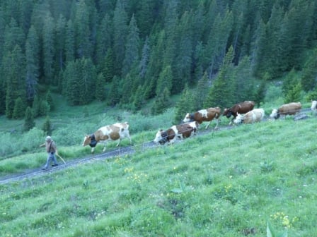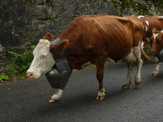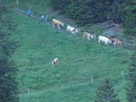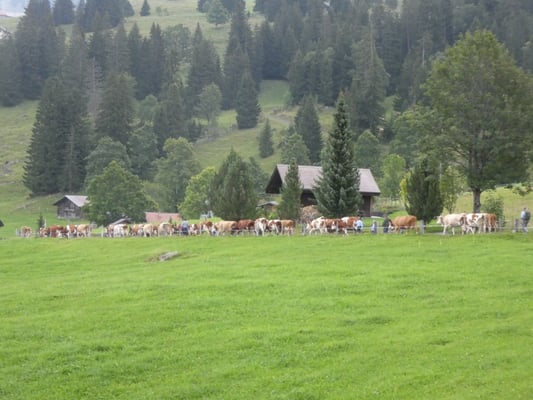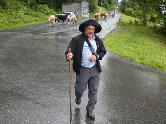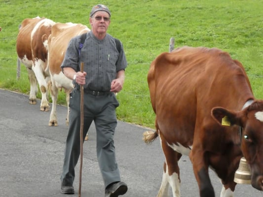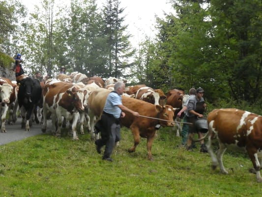 Jodlerklubs Oberburg mit dabei, welche tatkräftig mithalfen die rund 130 Stück Vieh sicher ins Tal zu begleiten. Nach dem Stallen und Treicheln resp. Glocken umhängen, ging es um Punkt 8 Uhr auf
