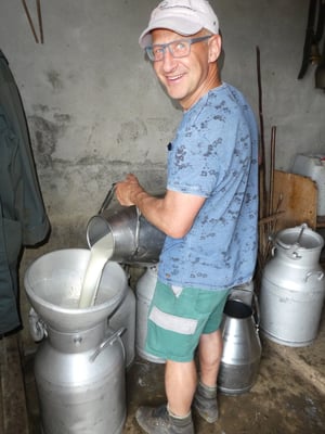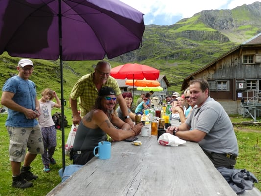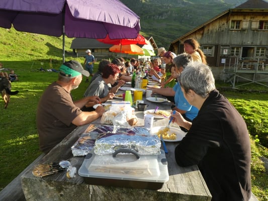 Am Wochenende vom 29./30. Juli 2017 trafen sich einige Jodler mit Familie und Freunden im Oberbärg auf der Alp Tschingelfeld. Am Samstag war ein Werktag mit Holz spalten, Steinplatten legen, Klauenstand zügeln, Käse putzen etc. angesagt. Am Abend halfen wir beim Melken im "Chüehbärg" mit. Besonders gespannt waren wir auf unsere Leasingkuh Enzian (Lobeli) welche wir auch selber melken durften.
