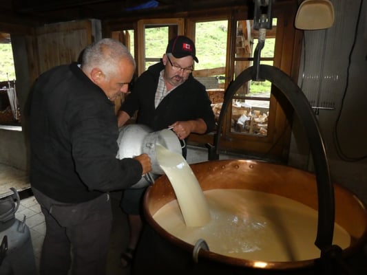 Am Sonntag Morgen hiess es wieder früh aufstehen. Wir durften nämlich unsern eigenen Käse (JK Oberburg) machen. Nach einem letzten "Ständli" verabschiedeten wir uns bei der Familie Grossmann. Danke Peigg, Sibylle und Familie für die Gastfreundschaft und die schönen Stunden mit euch.
