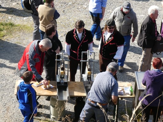 Der "Chästeilet" wurde musikalisch umrahmt mit dem Jodlerklub Oberburg, den Lobeli-Örgeler und dem Alphorn-Duett Geschwister Eggler aus Meiringen.