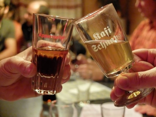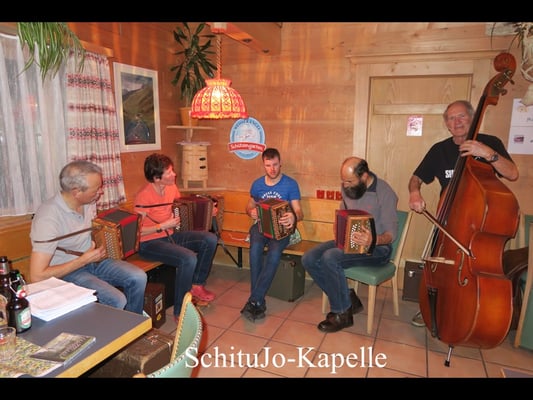 Am Abend bei feinem Essen spielte die ad hoc Formation lüpfige und besinnliche Stücke von Innerschweizer- bis zum Bernerstil. Dies vermischte sich mit gemütlichen Jodelliedern, Naturjutze aus der Innerschweiz und dem Bernerland bis hin zum stimmungsvollen Zäuerli aus dem Appenzellerland.